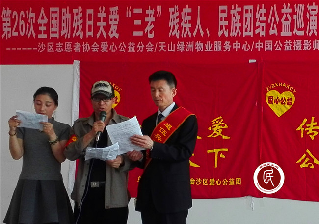新疆民生网讯(通讯员 许国平 玉尔古丽·买买提伊明)5月14日上午,新疆乌鲁木齐市沙依巴克区志愿者协会爱心公益分会联合中国公益摄影师新疆站、爱心企业走进社区开展慰问“三老”和残疾人主题公益巡演活动,以此迎接第26个“全国助残日”的到来。