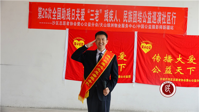 乌鲁木齐市沙依巴克区仓房沟管委会残联理事长、沙依巴克区志愿者协会爱心公益分会会长于明亮告诉笔者,之所以选择这个时机走进该物业小区送节目慰问演出,目的就是为了表达中国志愿者对“老党员、老干部、老模范”、残疾人代表和爱心企业主的尊敬和爱戴。由于自己本来是肢体残疾,能力微薄,带动和影响一批人共同携手公益,是自己多年的梦想,虽然自己爱心私家车主贴了点燃油和时间,可看着志愿者们的热情,看到社区居民洋溢在脸上的笑容,大家都觉着很值……”