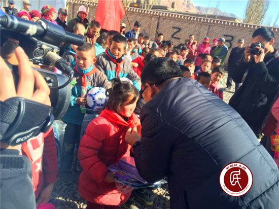 (图为喀什供电公司人员向贫困学生发放学习用品)