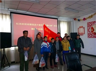 新疆民生网讯 11月23日,阿克苏市兰干街道红光社区与辖区新疆广电总局636台在职党员一起在社区会议室启动了“点亮微心愿,奉献微爱心”主题实践活动。活动中,在职党员帮助辖区前期征集的10户贫困家庭儿童实现了微心愿,微心愿里有学习文具、书籍、帽子、手套等,实现心愿后的孩子脸上露出开心的笑容。每一个微心愿的实现,每一张孩子笑脸的背后,都代表了党员干部对少数民族儿童的一份关爱之情。