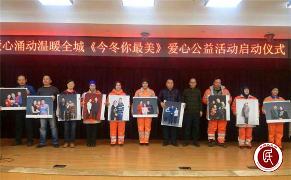 活动现场,爱心企业新疆小河奔流文化发展有限公司负责人和嘉宾代表还为环卫工人代表赠送了全家福和《今冬你最美》“明星”个性贺卡。