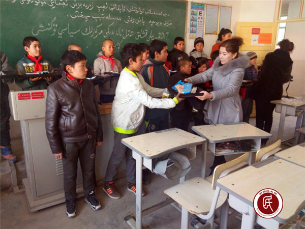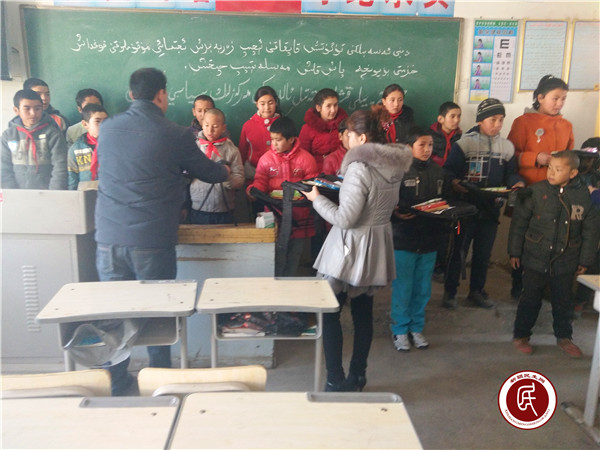 新疆民生网讯 (通讯员 谭庆庆)1月20日上午,阿克苏地区乌什县亚曼苏乡计生办一行来到亚曼苏柯尔克孜民族乡中心小学,为20名贫困学生送上书包、本子、铅笔、文具盒、橡皮等学习用品。