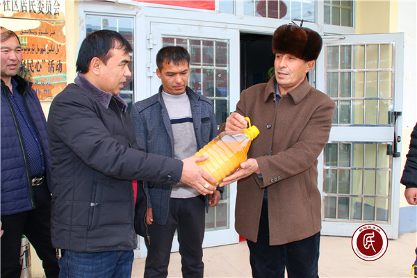 新疆民生网讯(通讯员 邓江)2017年 2月16日下午,克州乌恰县乌恰镇乌尔多社区居民塔伊尔·阿卜杜克热木带着大米、食用油来到了乌恰镇乌尔多社区。