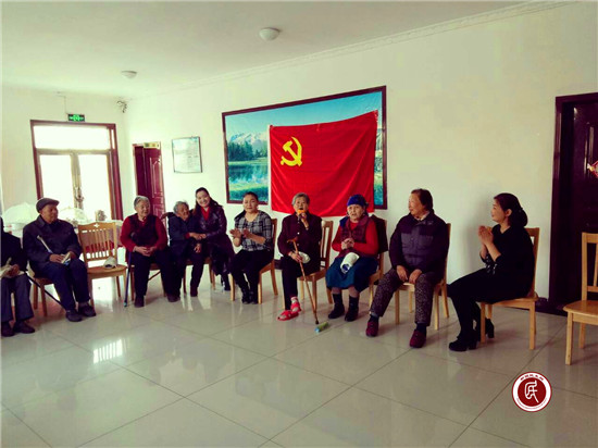 活动中,彩兰英老人还高兴的给大家唱了首红歌《共产党好》,把气氛推向了高潮,赢得了大家的阵阵掌声。