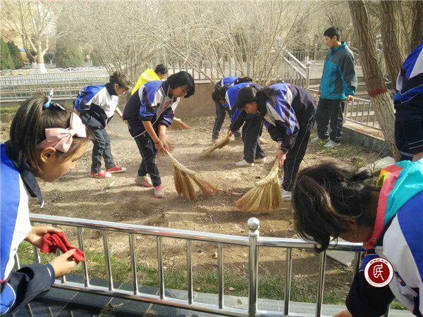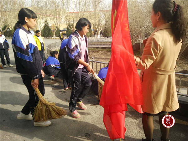 新疆民生网讯( 通讯员 周军、谢盼盼) 3月16日,阿克陶县红柳中学以“千万个雷锋在成长”学雷锋志愿服务主题月为契机,组织40余学生志愿者来到阿克陶县委大院开展大扫除活动。