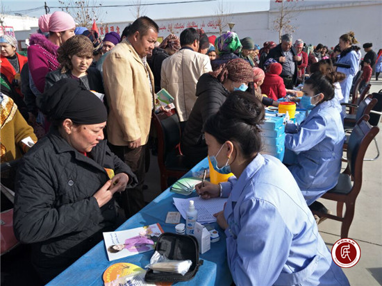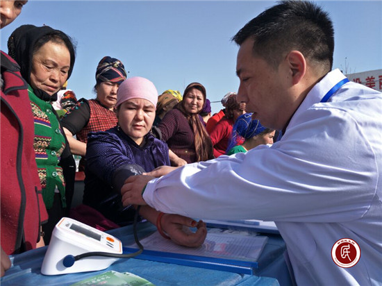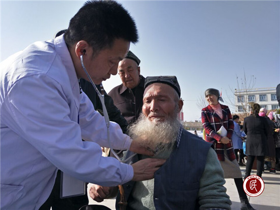 医生吐尔逊克孜·艾尔肯对社区干部帕力旦说:“我们结合‘学转促’活动,下到离城7公里的社区为辖区居民进行常规人群一般体格检查和普通疾病筛查诊断,同时开展通俗易懂的儿童妇女保健、传染病预防、慢病防治等健康知识讲座、免费义诊、免费发放药品等,目的就是落实党的医疗惠民政策,为偏远城区的各族群众办实事、办好事!”