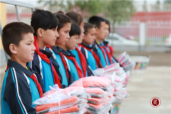 为改善贫困家庭孩子的生活条件,帮助他们树立自信、自立、自强的信念,2018年5月21日,国家发展改革委向新疆贫困少年儿童献爱心活动,自治区发展改革委“访惠聚”驻村工作队向荒地镇中学少年儿童献爱心活动,自治区发展改革委民族团结一家亲“恒爱行动”献真情活动在莎车县荒地镇中学隆重举行,向广大贫困学生捐赠崭新的运动服200套,毛纺织品40余件、毛线10小包等。