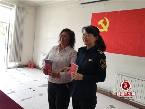 乌鲁木齐海关关税处戎忻蕾是哈丽丹·尕依提的结对党员,她说:“我也是第一次在村里过政治生日,并且还是和我的结对党员哈丽旦一起过的,今后我们一定会互相学习,互相帮助,缔结友谊,共同进步……”