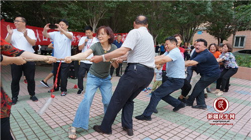 晚上20:30时,楼寓趣味活动正式开始,100余位各族居民齐聚一堂,参加幸福社区的传统楼寓项目,拔河、保龄球、跳绳三个传统活动项目引来全体居民围观参与。团体项目拔河比赛激发了全场的热情,各族居民按照楼寓划分为不同队伍,相互角逐,相互比拼,呐喊声、加油助威声此起彼伏。