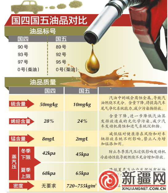 新疆网讯(记者李宁艳 通讯员王浩 雷丛营)12月1日起,新疆车主们将用上国五标准汽油。至此,新疆市场将告别90#、93#、97#汽油,取而代之是89#、92#和95#汽油。
