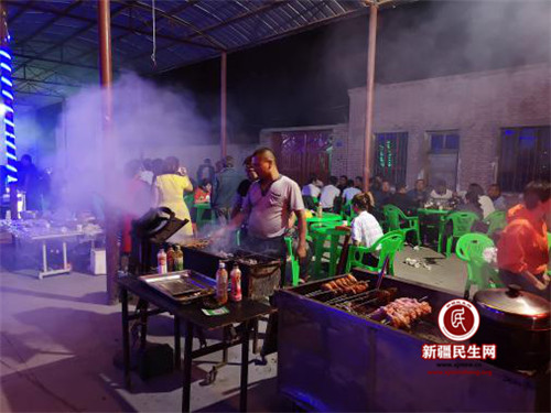 在夜市摆摊的乌堂(4)村农民库尔班骄傲的说:“我之前一直想摆个烧烤摊,没想到愿望终于实现了,在家门口就能挣钱。现在我们农民的日子越来越好,挣的钱也越来越多,感谢党和政府。”