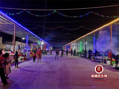 为进一步拓宽致富渠道,规范管理个体散经营户,拜城县克孜尔乡党委经过研究,决定在乌堂村巴扎开设夜市,由乡政府负责对夜市进行了设计规划,安装照明灯、彩灯等设施,充分营造氛围,并免费为贫困户提供桌椅板凳等配套设施。夜市共设立30个摊位。通过开设夜市,不仅增强了贫困群众脱贫致富的信心,更丰富了村里广大村民的夜生活,同时也和谐了邻里关系。