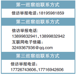 三个巡察组办公地点设在乌鲁木齐市环保局办公楼一楼 (乌鲁木齐市南湖南路西三巷35号),设置了信访举报电话。被巡察单位机关及下属单位设置了举报信箱,欢迎干部职工支持并参与巡察工作。