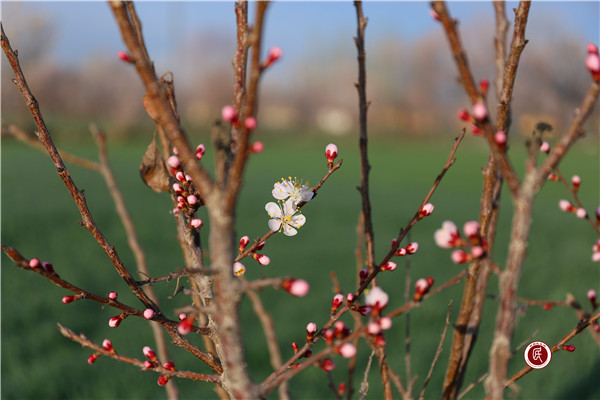 新疆民生网讯 (通讯员  曹永祺)阳春三月,万物复苏。金灿灿的太阳下,一片绿油油的麦苗正在茁壮生长,小路两侧的杏花朝阳微笑,含露绽放的花朵向行人展示着春的多彩多姿。