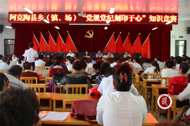 新疆民生网讯 (通讯员 彭黎)为进一步增强各级党组织和全体党员党的意识、纪律意识、规矩意识和组织意识,把党章党规党纪刻印于心、落实于行。根据阿克陶县纪委安排部署,6月20日下午,阿克陶县乡(镇、场)“党规党纪刻印于心”知识竞赛在阿克陶镇四楼会议室举办。阿克陶镇、玉麦乡、塔尔乡、加马铁热克乡、库斯拉甫乡、阿克塔拉农场等乡(镇、场)15支代表队参加比赛,通过抽签决定分为三组进行相互角逐,每组5个小队,阿克陶镇100余名党员干部观看比赛。