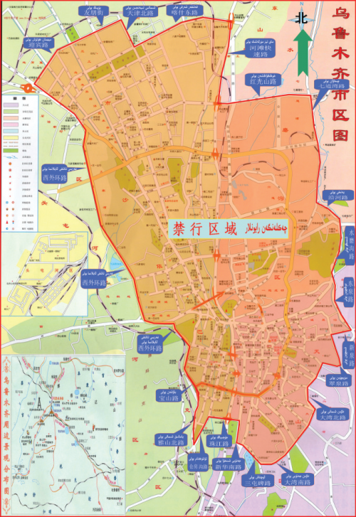 禁行区域:迎宾路—友朋街—天津北路—喀什东路—米东南路—红光山路—七道湾路—沿河路—水磨沟路—东泉路—新泉路—翠泉路—大湾北路—大湾南路—三屯碑路—新华南路—英阿瓦提路—珠江路—仓房沟路—雅山北路—宝山路—西外环路(含以上道路)围合的区域。