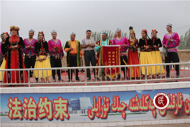 最后,一曲新疆民歌将活动推向了高潮,随着音乐的响起,群众们与演员一起迈出欢腾的舞步,共同谱写了一曲和谐的民族团结之歌。乡长依马木艾山·吾布力代表玉麦乡党委、政府向文艺团赠与一面锦旗,表达对此次演出的诚挚谢意。