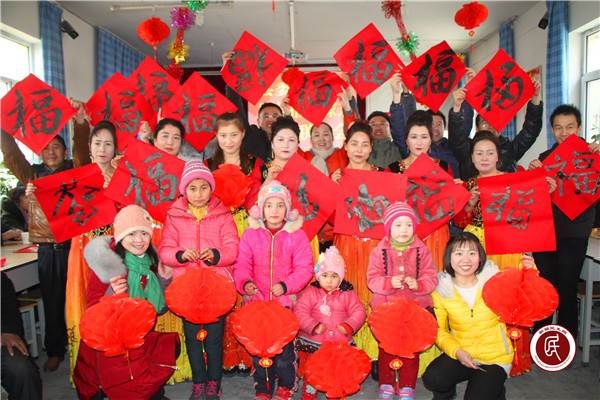 党员干部和各族群众手持春联、福字和灯笼一起合影,留下着珍贵的瞬间,气氛十分热烈。