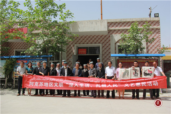 新疆民生网讯 (通讯员 陈国辉)5月18日上午,阿克苏市依干其乡良种尤喀克乔格塔勒村委会大院内,由国家民族画院、地区政协工委办公室、地区文联共同举办的送文化下基层活动吸引了众多村民来参观学习,感受文化熏陶,营造浓厚文化氛围,促进民族团结教育。