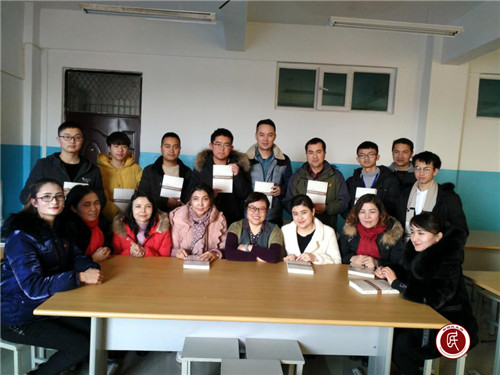 新疆民生网(焦鹏)12月7日下午,在拜城县第三中学,新疆师范大学金美芳教授给“国培计划(2018)”参加送教下乡培训项目的部分物理教师赠送了由她主编中国言实出版社(北京)正式出版发行的《新课程实用教学设计模式》一书,该书是2010年教育部人文社科基金项目《新课程目标下中学物理教学设计理论及其在新疆各民族中学实践的研究》,项目(10XJJA880002)研究成果并得到新疆教师教育研究中心资助。