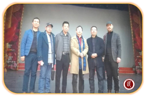 图左三为地委宣传部副部长文联党组书记孟彦东与谭五昌教授等在诗歌春晚合影