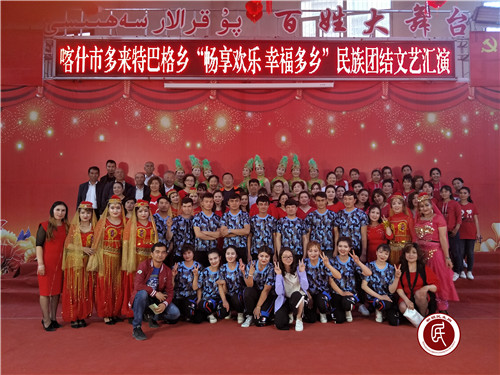 新疆民生网(顾晶晶 高艳)一曲曲动人的歌,歌唱着我们对美好生活的期盼;一个个文化小舞台,精彩纷呈,汇演了载歌载舞的美好场景……农民文艺演出队带来的精彩表演,演绎出新时代幸福生活最美的赞歌。红色五月,激情飞扬。喀什市多来特巴格乡花园(13)村在文化活动中心举办“畅享欢乐,幸福多乡”民族团结文艺演出,精彩的文艺演出为1000多名村民送上了精彩的“文化盛宴”。