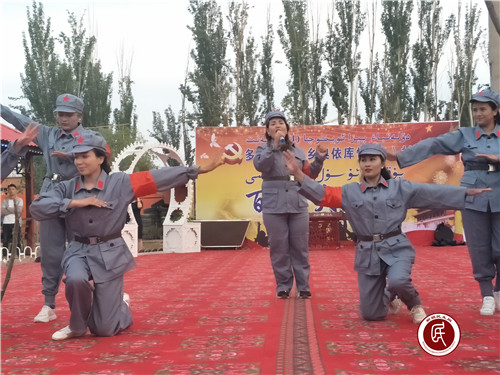 伴随着村民们的热烈掌声,演出在集体舞《祖国是母亲》中拉开了帷幕,优美的舞姿,欢快的音乐,点燃了在场所有人的热情,更是赢得了台下村民们的热烈掌声。紧接着,由亚尔库勒贝希(4)村村民带来的舞蹈《西游记》更是将活动推向了高潮。装扮逼真有趣的唐僧、孙悟空、沙和尚和猪八戒行走在人群之中,嗨翻了全场。村民们一边欣赏舞蹈,一边和他们逗乐。花园(13)村带来的歌伴舞《映山红》,动人的歌喉、优美的舞姿,赢得现场更是掌声不断、气氛活跃,演员们载歌载舞,村民们热情洋溢。