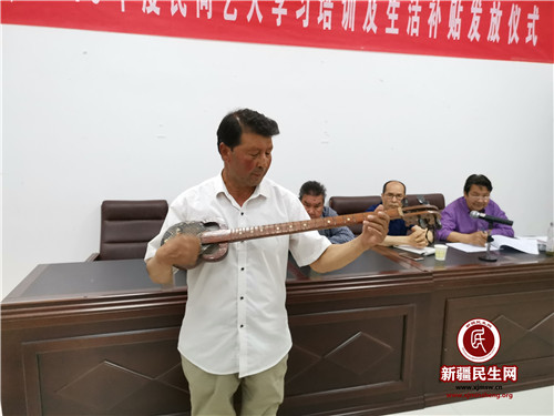 培训会通过宣讲党的十九大精神内容、扫黑除恶中黑恶势力的表现形式,增强四个意识,树立四个自信,坚定民间艺人的思想认识,提高了他们的政治素养,筑牢了他们的思想防线。50余名民间艺人、非物质文化传承人、摄影爱好者、农民画家,在老师的现场指导下对传统民间麦西来普的吹、拉、弹、唱、跳、绘画摄影等技巧进行学习,有效的提高民间艺人舞台表演力,增强民间艺人的艺术创造力、节目编排、歌舞表演等水平。
