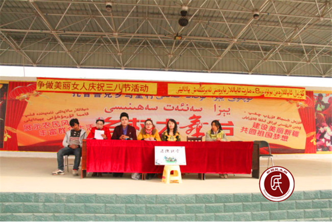 新疆民生网讯,为丰富乌堂村文化生活,深入推进去极端化教育,大力营造积极健康向上的文化氛围,3月8日,自治区发展改革委“访惠聚”工作队住乌堂村工作组策划出资,联合村两委开展了以“争做美丽女人”为主题的庆“三八”国际劳动妇女节系列文化活动,积极倡导现代文明生活,用全面参与的实际行动扮靓“三八”节。