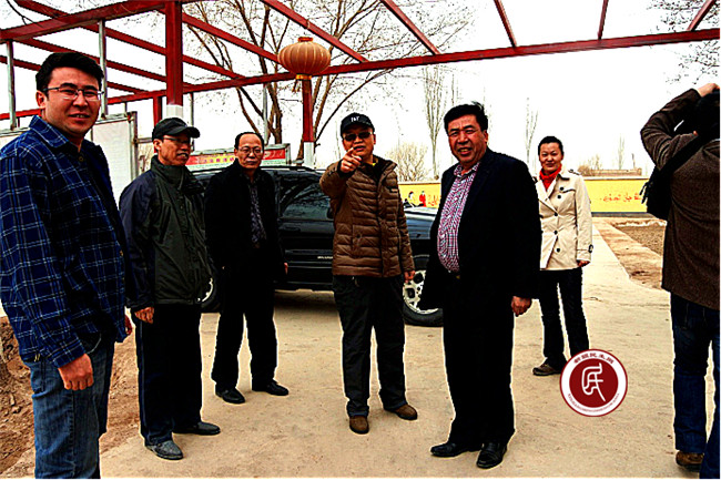 (艾力亚尔·买买提的父亲买买提·沙吾尔(左5)因工作关系来伽师县顺便看望慰问了自治区地税局住和夏阿瓦提乡墩吕克村干部)