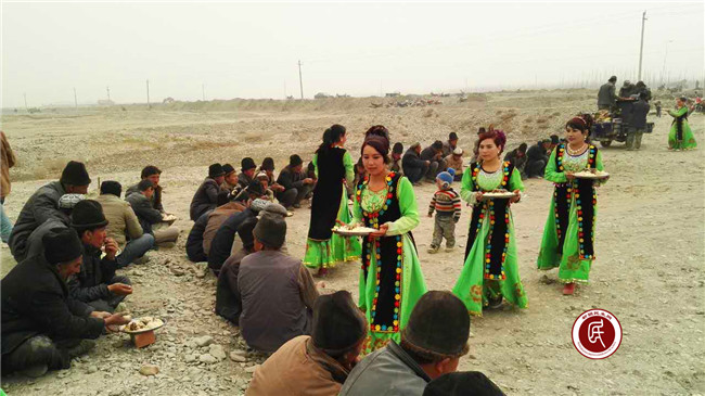 同志们不仅给村民们送来了物质食粮,还带来了精神快乐。午饭后,加依村的文艺队青年们,为劳动村民们献上了精彩的文艺表演,工作组还与村民们跳起了欢乐的麦西来普,工地上洋溢着亲情欢乐、民族团结的热闹气氛。村民们非常激动,纷纷感谢工作组想着他们,惦记着他们。