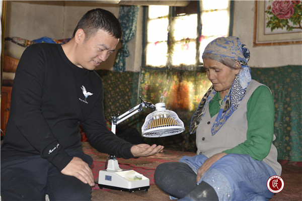 新疆民生网(喻文波、鲁雪琴)“帕沙汗·沙塔尔大妈,我又来了,今天我给您带来了一台电磁治疗仪,您的腿疼每天用这个治疗仪烤电十五分钟可以缓解病痛!”4月28日,浙江省嘉兴市援疆干部、沙雅县人民法院副院长沈宏宇给亲戚帕沙汗·沙塔尔大妈送了一台电磁波治疗仪。
