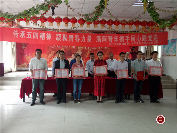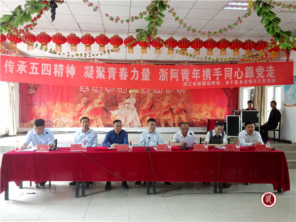 活动中,共同开展“传承五四精神、凝聚青春力量、浙阿青年携手跟党走”的庆五四主题活动,该村20余名团员青年共同合唱的《没有共产党就没有新中国》和《歌唱祖国》将活动拉开了帷幕,爱国之声传遍村庄。浙江省援疆指挥部对涌现出的25位政治过硬、能力突出、作风优良、业绩突出的优秀援疆青年干部人才授予2018年“浙江优秀援疆青年”称号,进行了表彰,并颁发了获奖证书。