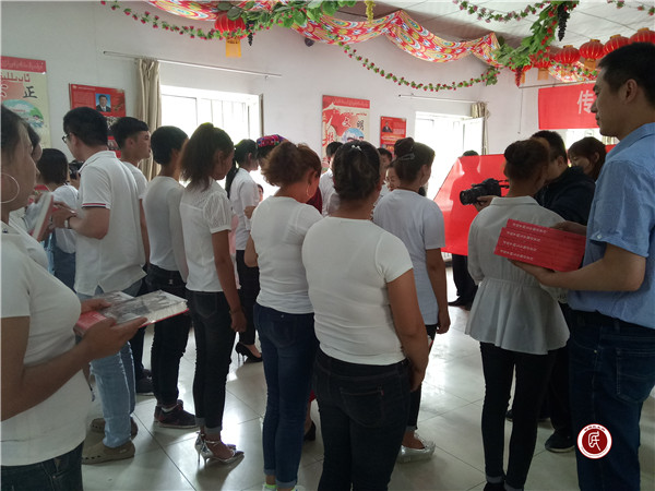 之后,举行尤喀克巴里当村新团员入团宣誓仪式,全村15名优秀青年成为了一名光荣的共青团员。在激昂的团歌乐曲中,面对团旗宣誓,实现了人生的政治理想。六位“浙江优秀援疆青年”代表为新团员郑重地佩戴上团徽,并送给他们每人一本《习近平的七年知青岁月》,叮嘱新团员努力学习,牢记使命,坚定信念跟党走。胸佩团徽和面对团旗,3名被授予2018年“浙江优秀援疆青年”和尤喀克巴里当村一名新团员分别进行了表态发言,进一步坚定了为共产主义奋斗终生的政治宣言。