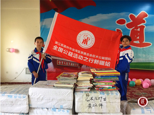 新疆民生网(王志华)近日,拜城县第一小学的孩子们收到万里之遥的浙江省温州市龙湾区慈善总会巨木公益团队捐赠的1698册图书,并在拜城县第一小学行政楼会议室隆重举行 “同心关爱,共沐书香”为主题的捐赠仪式。温州援疆支教团第五组组长夏敬渺、温州援疆支教团第五组副组长周常云、副校长刘玉萍出席捐赠仪式。